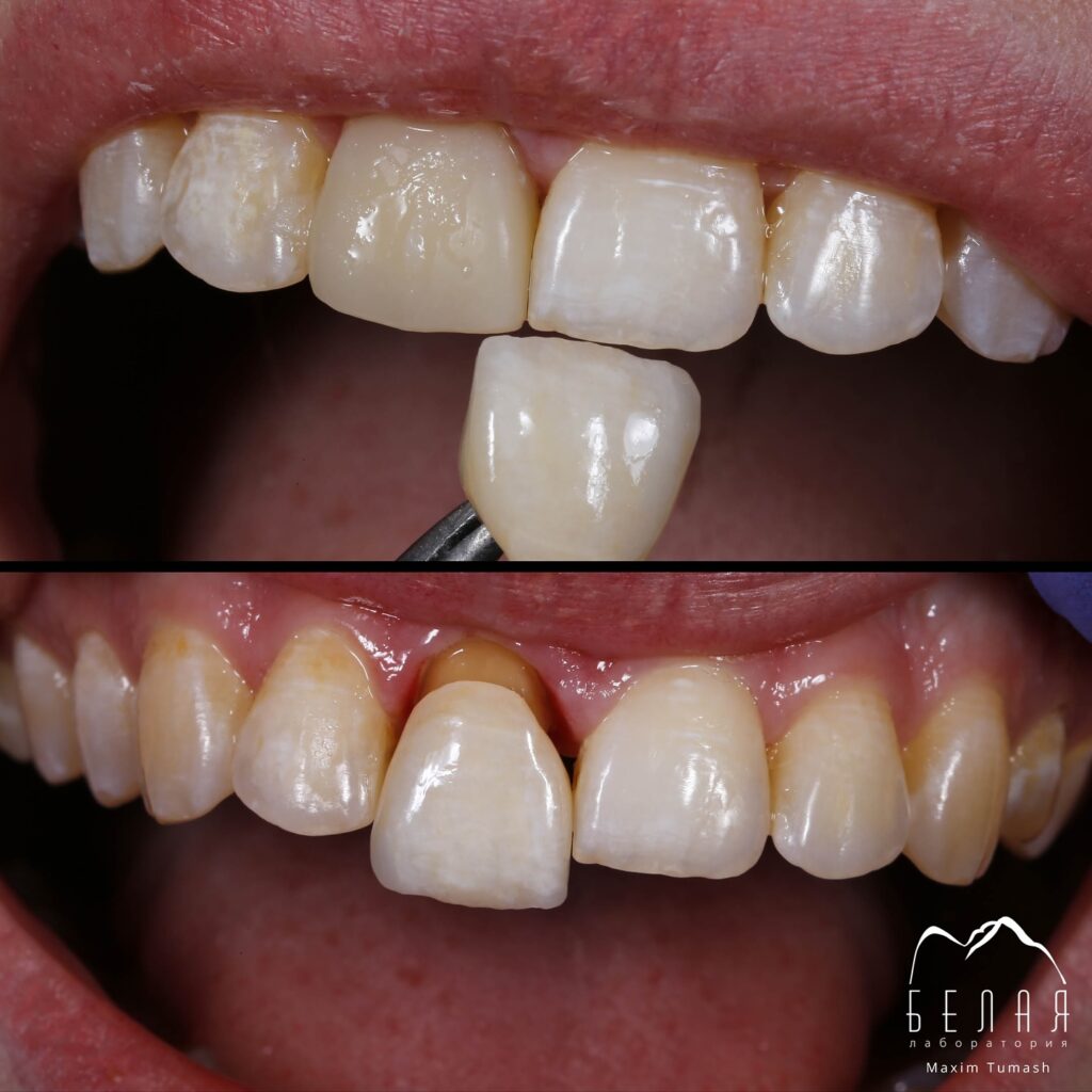 Одиночная центральная коронка — одна из самых сложных задач в работе зубного техника.